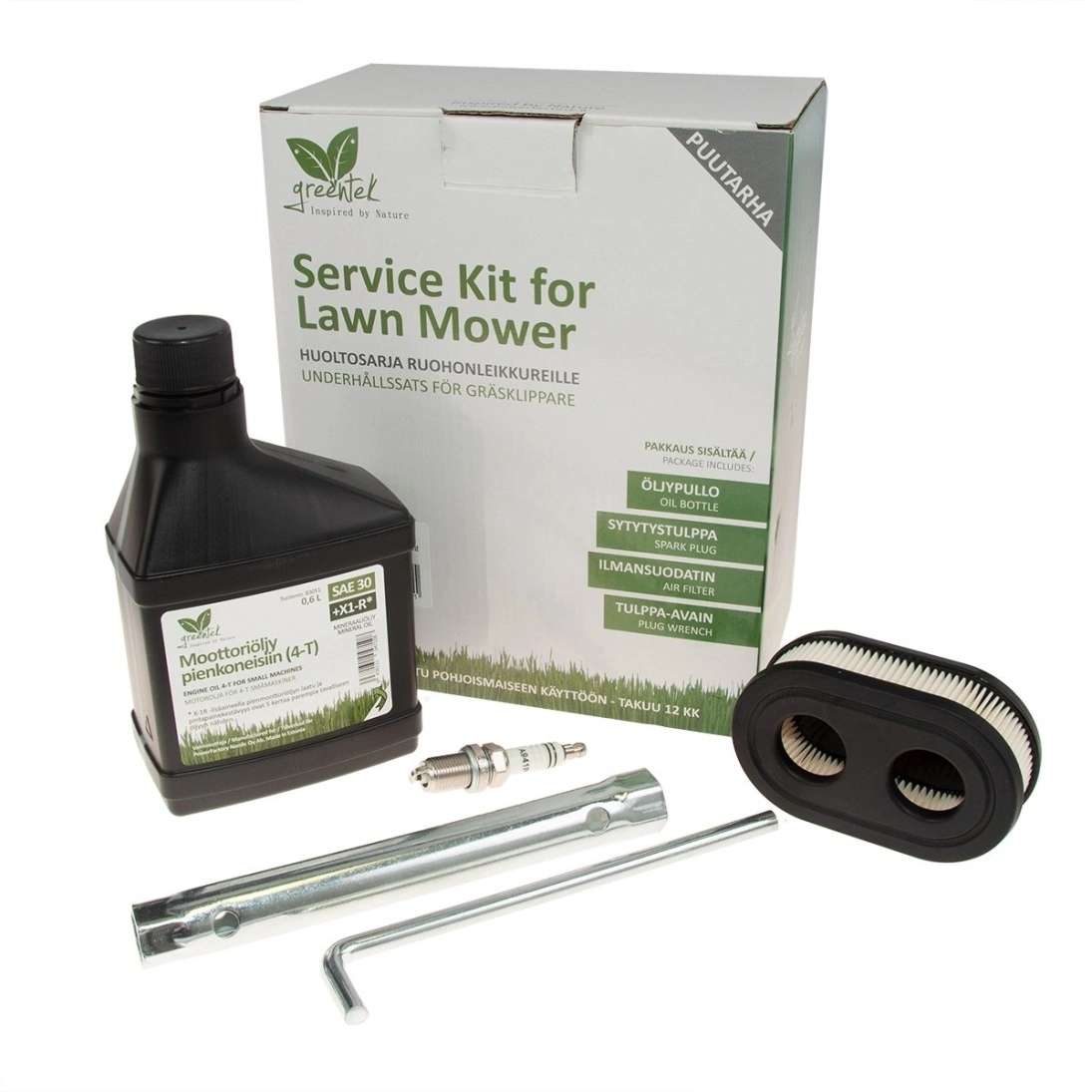 Greentek huoltopaketit sisältävät kaiken oleellisen leikkurin perushuoltoon. Kaikki näppärästi yhdessä paketissa.