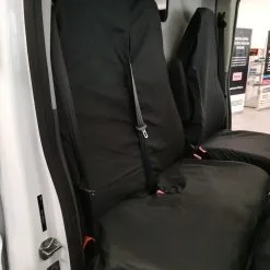 Kotimainen TammerS korjaamosuoja, Enstex kangasta. Pakettiauton 2-istuttavaan penkkiin.